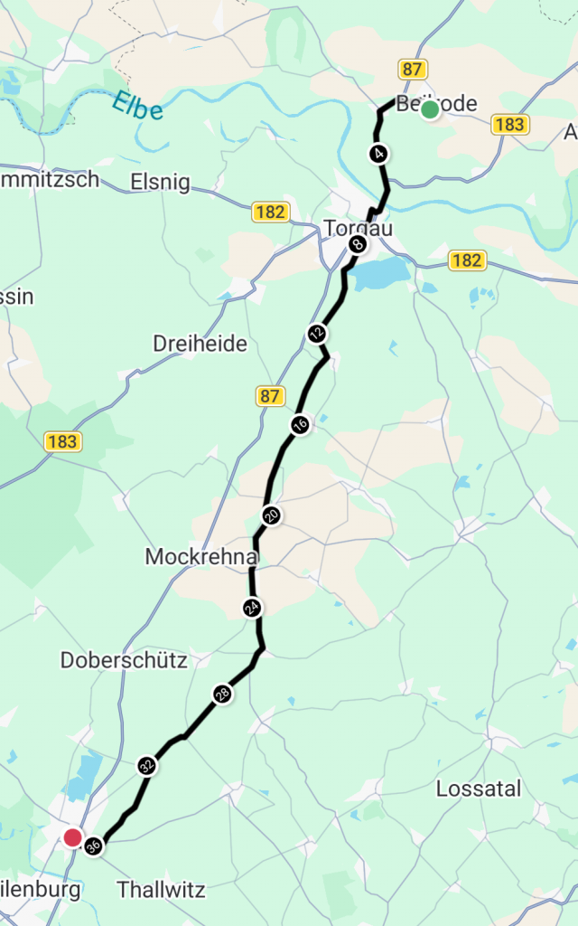 Der Tag begann in Beilrode, von dort ging es zunächst durch die kleinen Orte Zwethau und Kreischau. Viel Land, viel Himmel, viel Ruhe – diese Gegend wirkt so entspannt, als hätte jemand die Zeit hier vorsichtshalber auf halbe Geschwindigkeit gestellt.