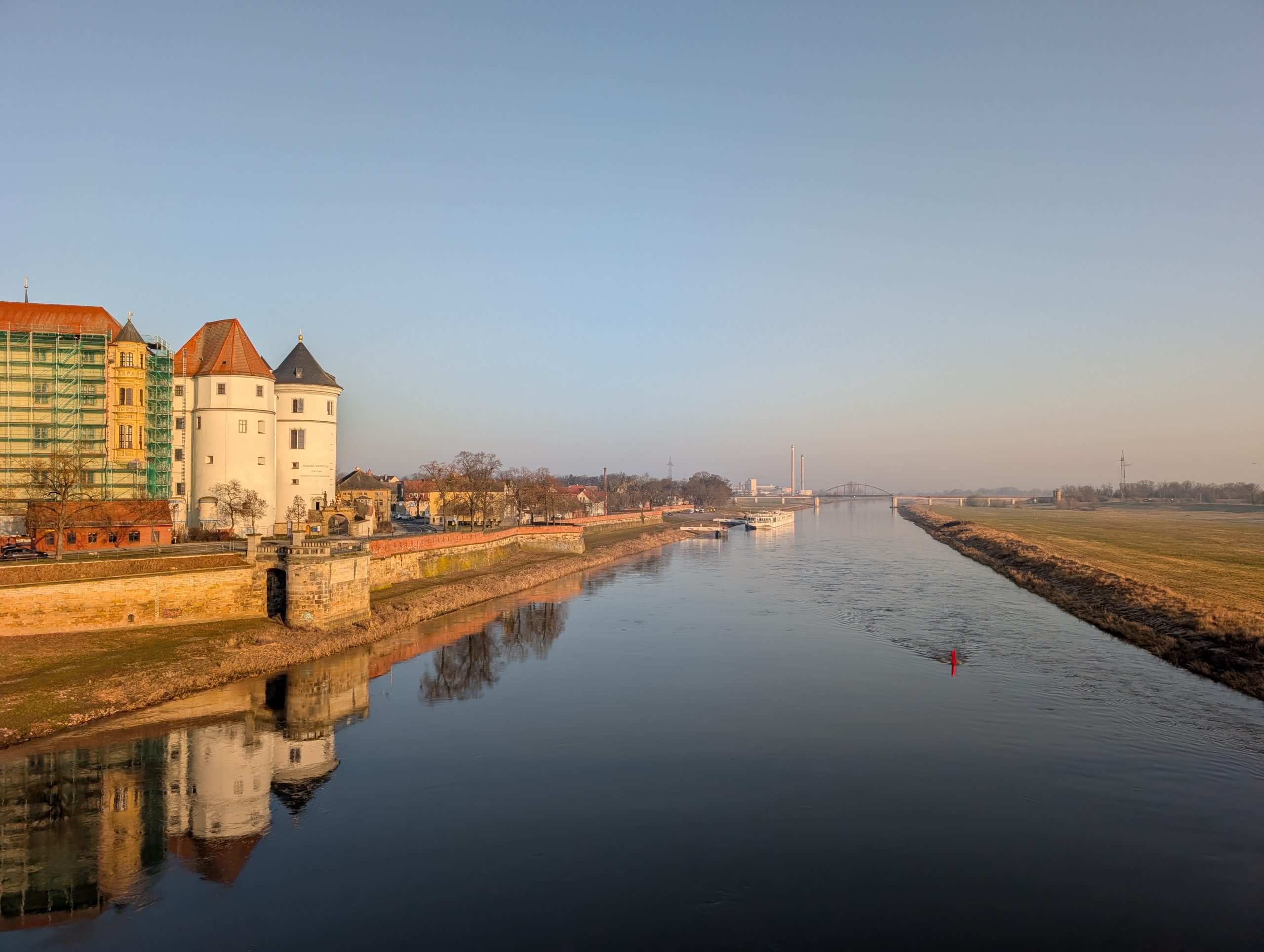 In Torgau überquert man die Elbe und damit gleichzeitig die Grenze zwischen Brandenburg und Sachsen.