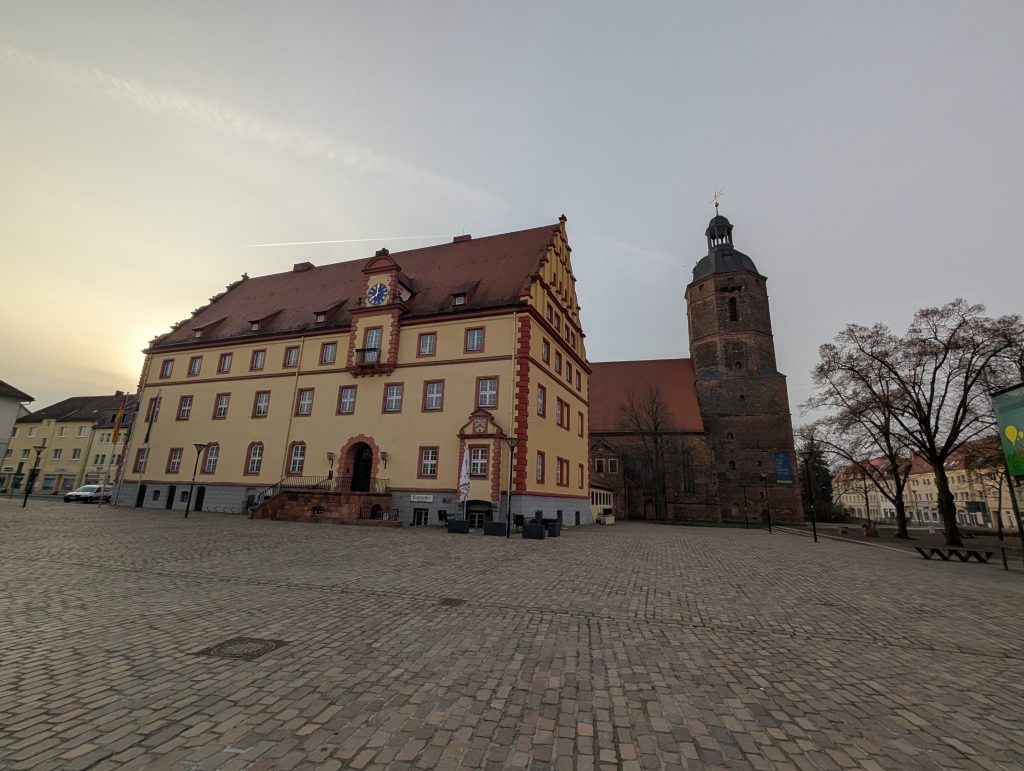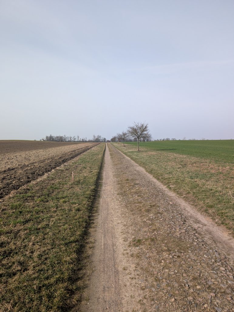 Genau unter diesen Bedingungen startete ich heute in Eilenburg zu meiner letzten Etappe auf diesem Abschnitt des Jakobswegs von Frankfurt/Oder nach Leipzig. Ein schöner Tag für einen Pilger – und offenbar auch für Rehe, denn gleich zu Beginn standen sie ruhig auf einem Feld und beobachteten den Wanderer, als wollten sie kontrollieren, ob ich auch wirklich den richtigen Weg nehme.