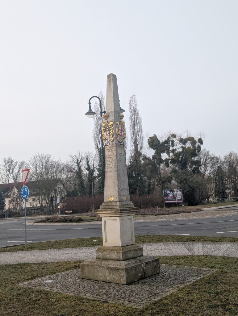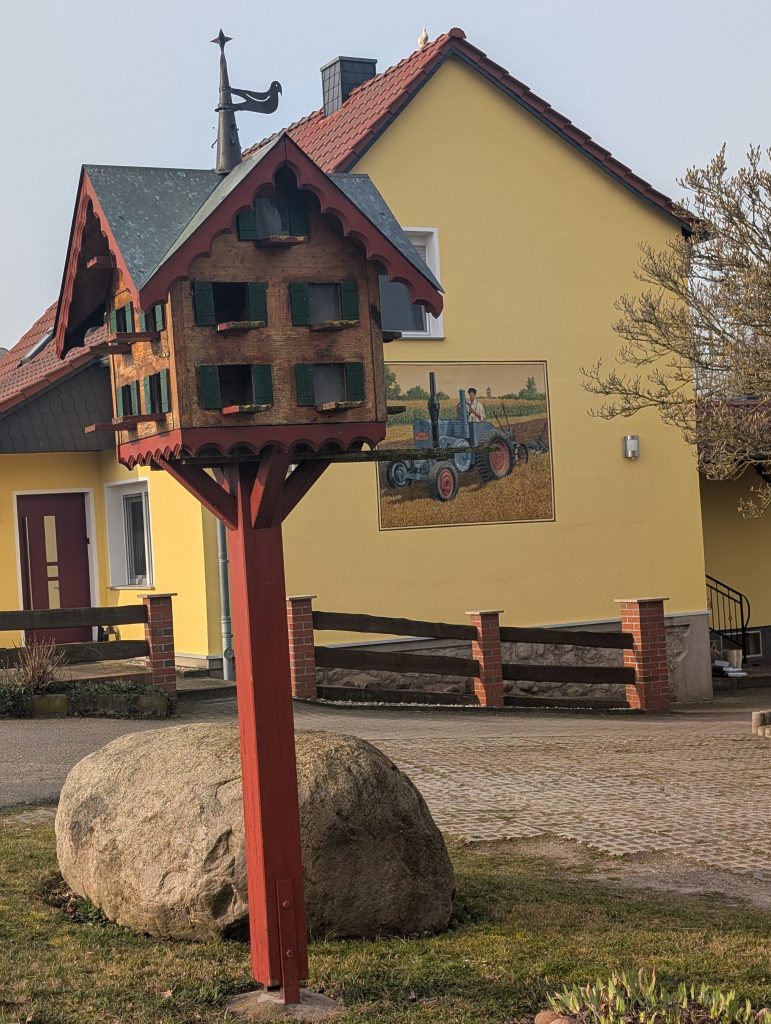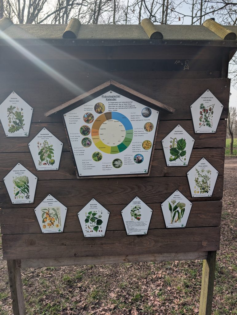 Weiter ging es vorbei am Schloss Schönefeld, wo ein besonders schöner Wegweiser des Jakobswegs steht.