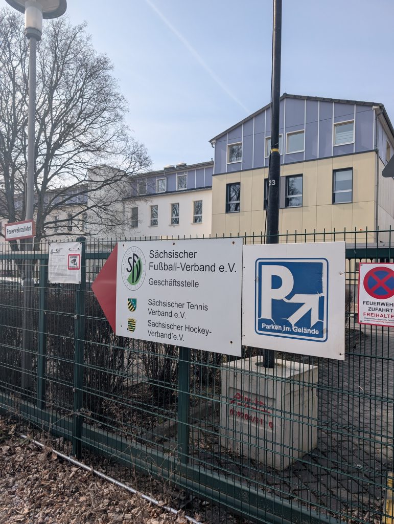 Plötzlich stand ich vor dem Gelände des Sächsischer Fußball-Verband und des Sächsischer Tennis Verband.