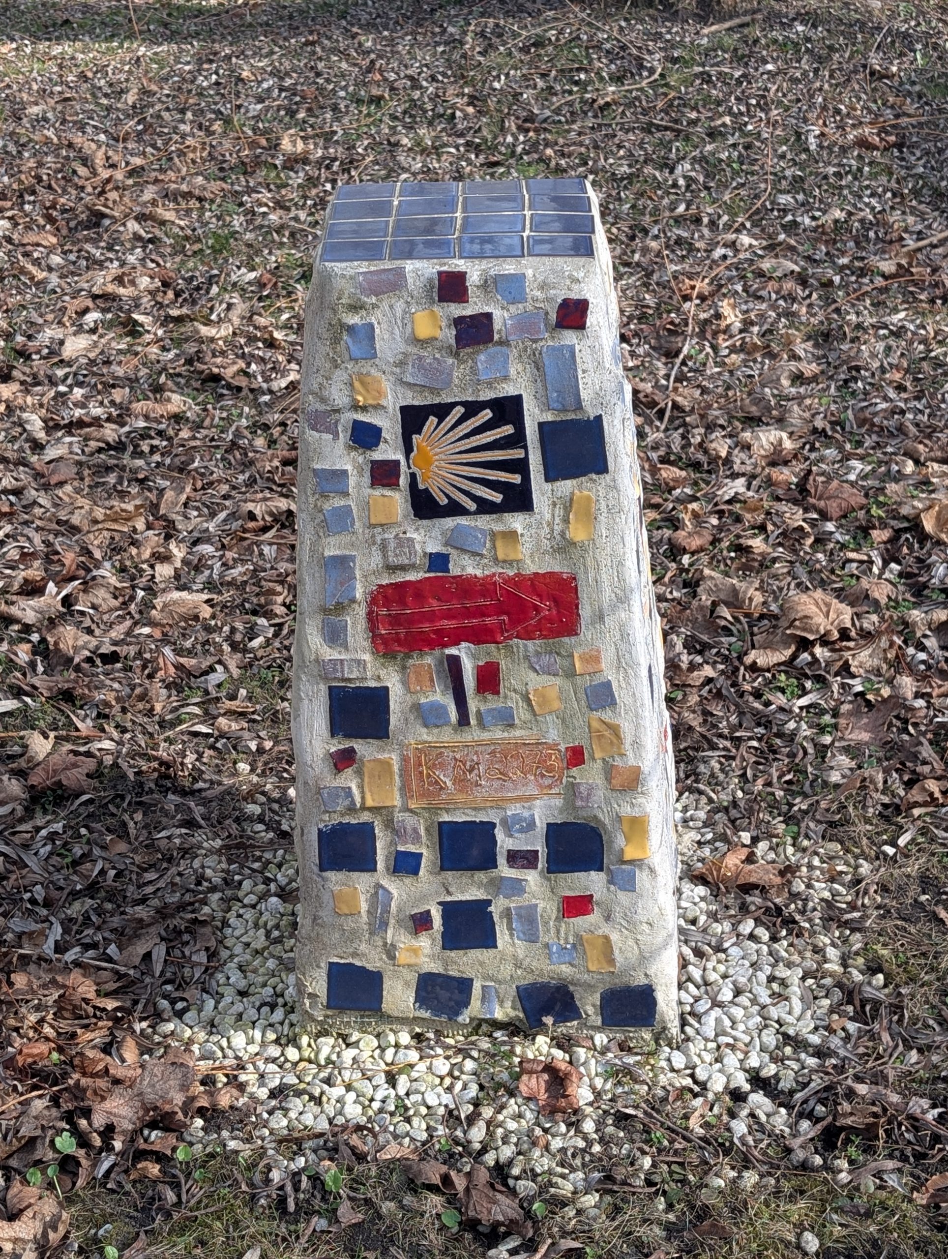 Ab Plaußig wurde der Weg endlich wieder zuverlässig markiert – mit der berühmten Muschel, dem klassischen Symbol des Jakobswegs.
