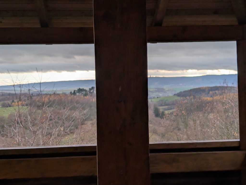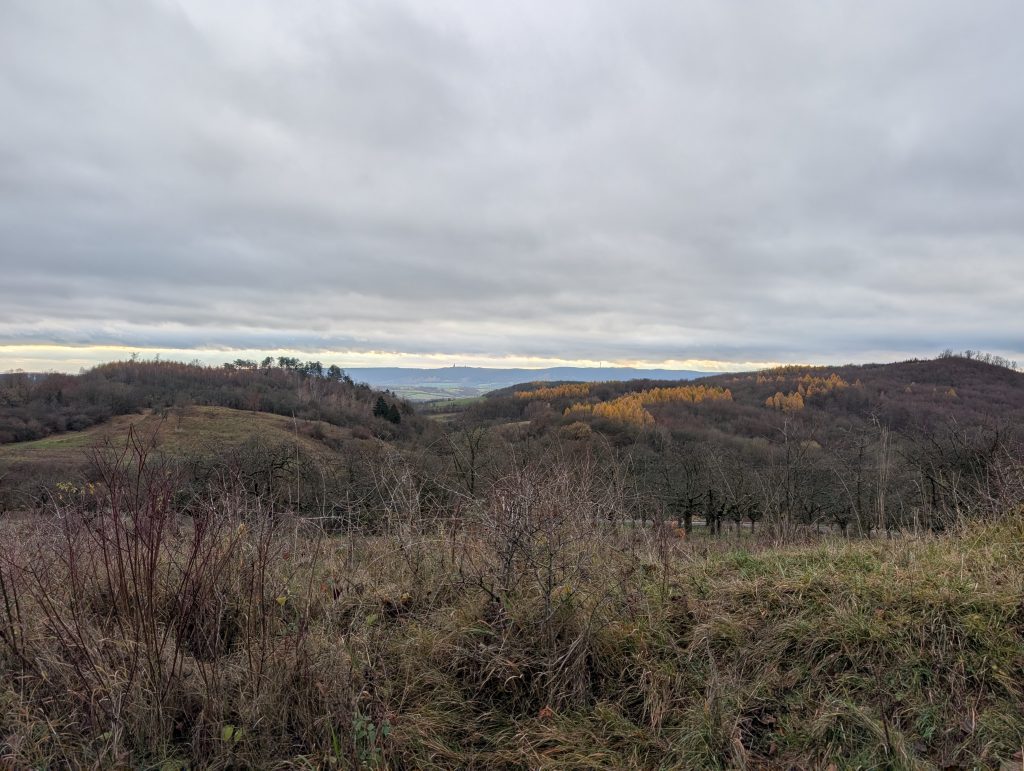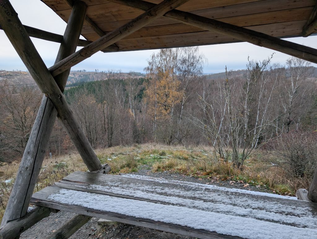 Nur wenige hundert Meter neben der Schachthalde Hohe Linde, die aktuell im ASP-Sperrgebiet liegt. Der Turm bietet dennoch freien Blick über das sanfte Harzvorland.