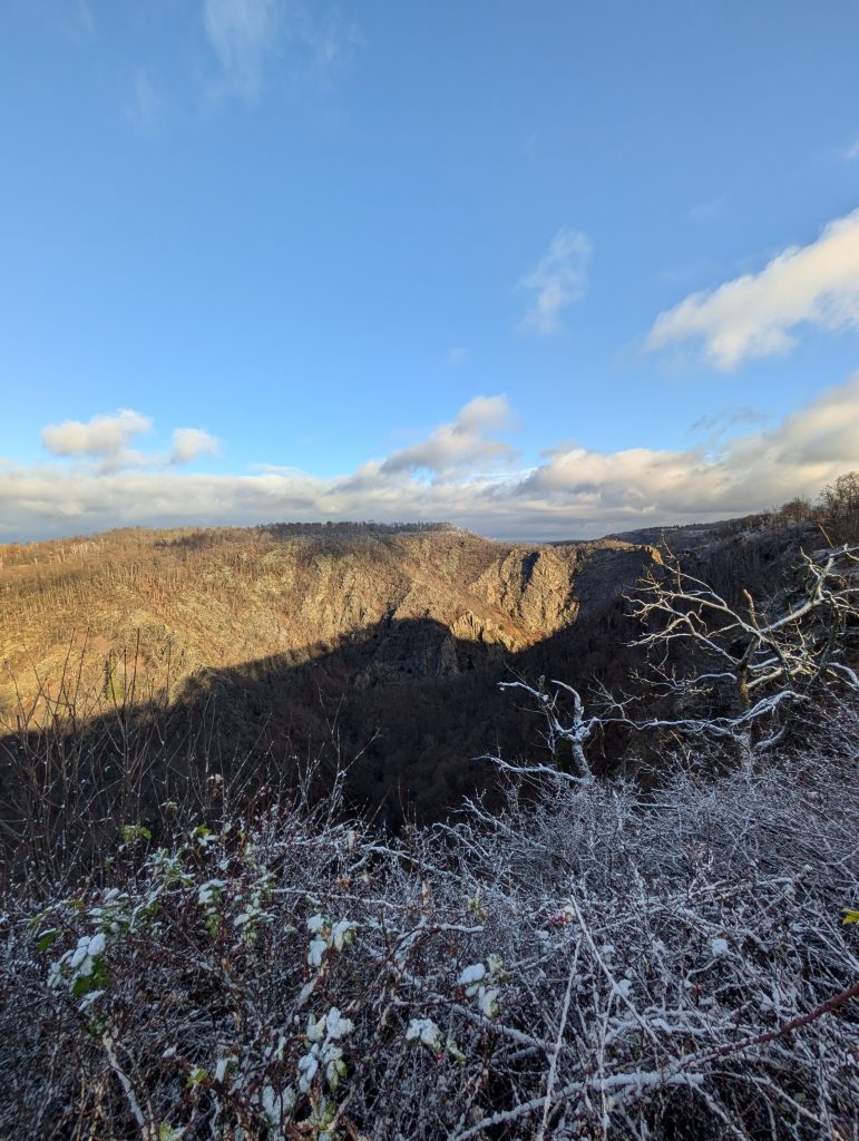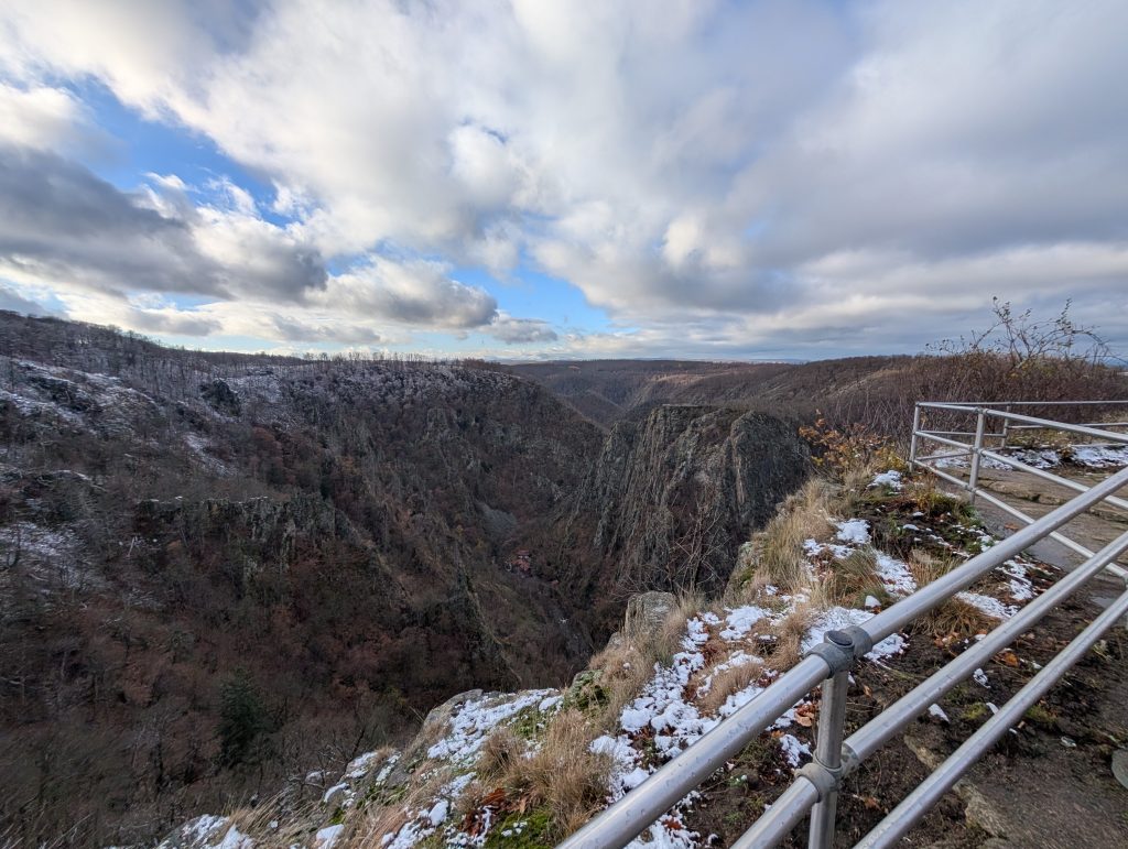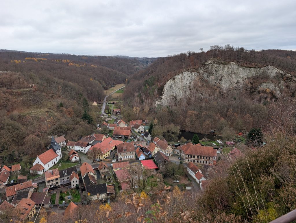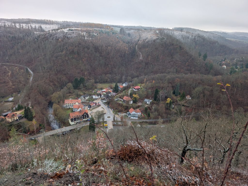 Der Blick über das wilde Bodetal Richtung Treseburg ist einfach magisch – tiefe Schluchten, Felsen, rauschende Wälder.