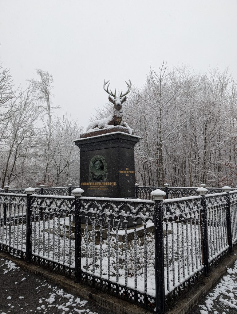Das „Pfeil“-Denkmal (Stempelstelle 68) erinnert an den Harzer Forstmann Gottlob Heinrich Pfeil, der sich um nachhaltige Waldwirtschaft verdient gemacht hat. Ein Denkmal mitten im Wald – unscheinbar, aber bedeutend.
