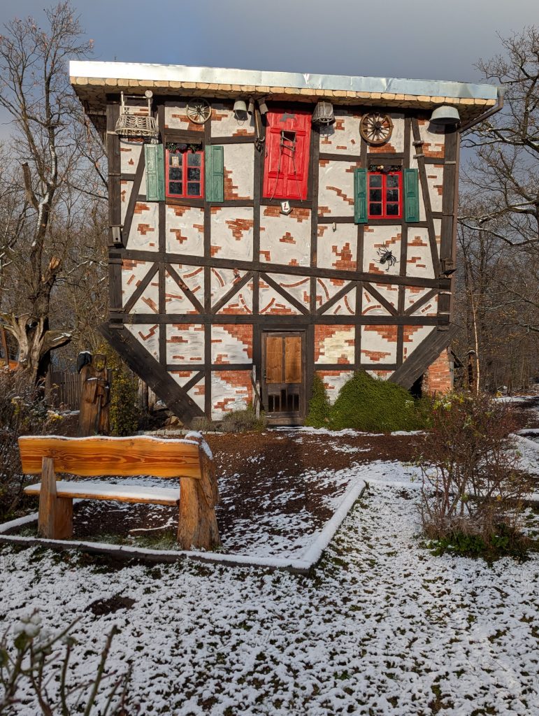 Mit seinen bunten Häusern, dem Haus auf dem Kopf und den Hexenskulpturen ein echtes Spektakel —