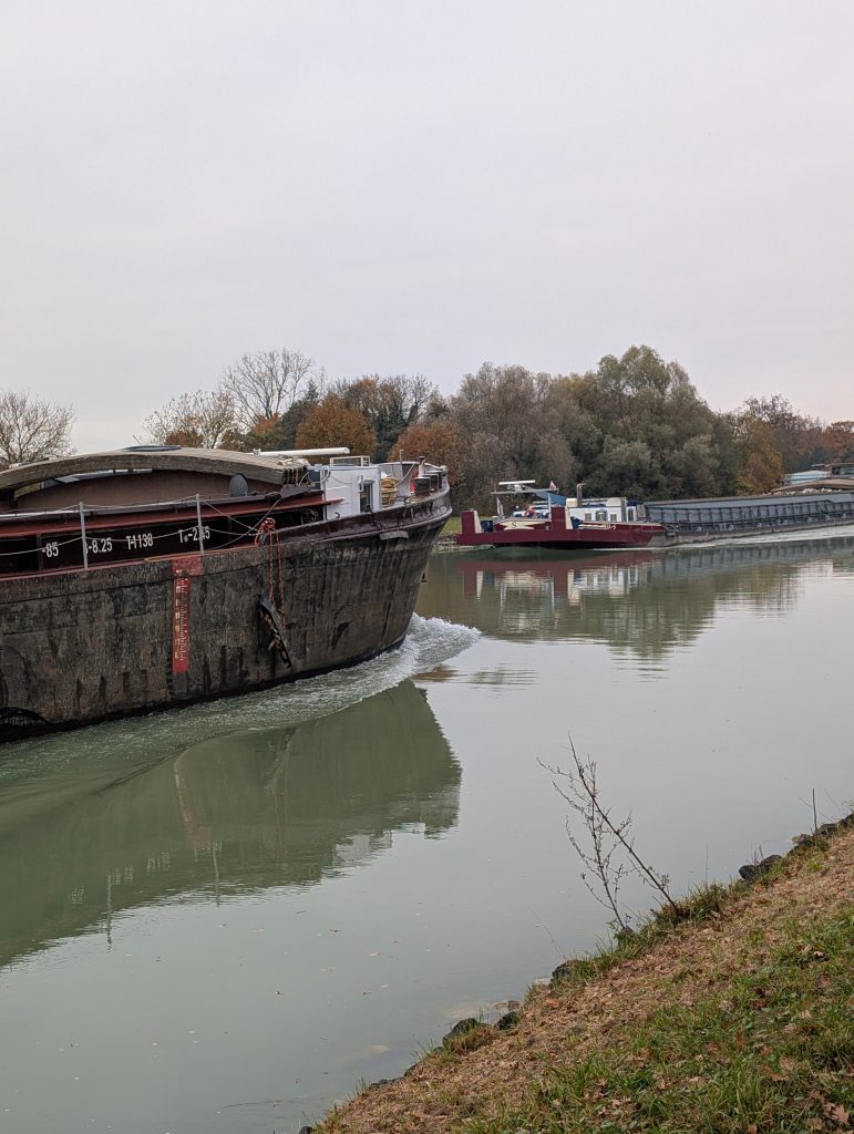 Ich überhole tatsächlich zwei Containerschiffe an der Schleuse!