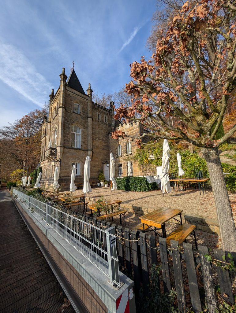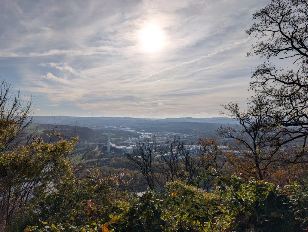 Unter der A45 hindurch, vorbei am Dortmunder Golfclub, Richtung Hohensyburg. Oben thront die Spielbank – ich sag mir lachend: „Kurz das Urlaubsgeld abholen“ – natürlich reine Ironie. Heute wird in Kilometern investiert, nicht in Jetons. Zum ersten Mal auf dieser langen Strecke von Osnabrück nach Beyenburg spüre ich echtes Bergland unter den Füßen, rund 300 Höhenmeter – das geht in die Waden, aber auch ins Herz. Ab dem späten Vormittag dann Sonne pur. Und plötzlich dieses Panorama über Hagen: Wälder, Täler, Licht. Wäre da nicht der Krach der A1, die unaufhörlich lärmt. Da kannste mir ein Haus schenken – ich würd’s nicht nehmen.