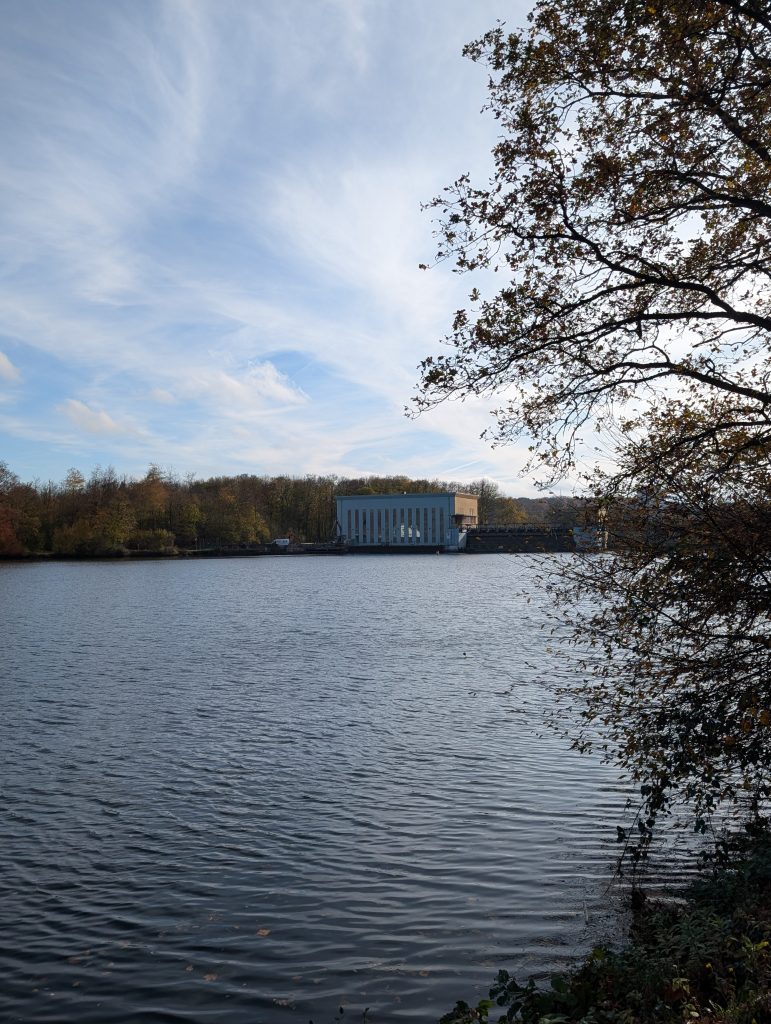 Dann hinunter zum Hengsteysee – endlich Ruhe, Wasser, Weite. Durch die Naturwaldzelle, vorbei am alten RWE-Kraftwerk „Köpfchen“, das längst stillgelegt und heute als Industriedenkmal erhalten ist. Ich mag solche Orte – sie erzählen Geschichten von Arbeit, Wandel und Abschied. Heute lasse ich die Umwege des offiziellen Jakobswegs weg. Keine Schleifen, keine Zusatzrunden, nur der direkte Weg. 25,68 Kilometer bis Haspe, Sonne im Gesicht, Schweiß auf der Stirn, Zufriedenheit im Herzen.