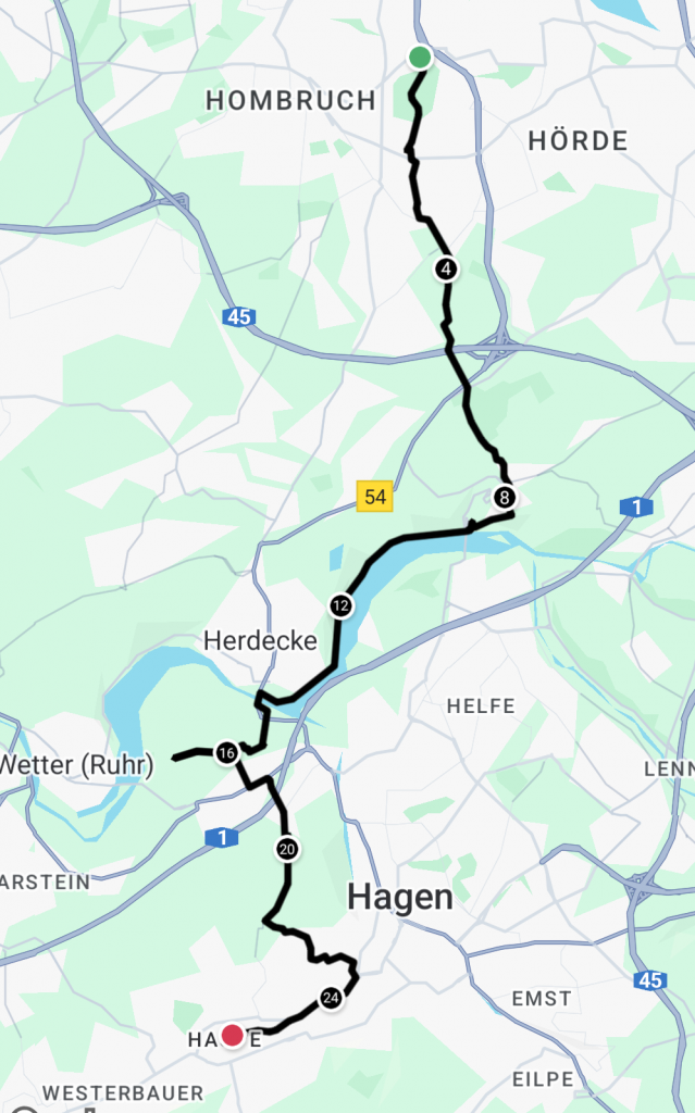 Mit dem Zug zurück nach Vorhalle, das Wohnmobil nach Schwelm umgesetzt. Noch eine Etappe bis Beyenburg, dann ist Schluss. Ich hab’s ehrlich übertrieben – zu viele Kilometer pro Tag. Jeder Knochen meldet sich, als hätte er ein eigenes Beschwerdeformular. Aber so ist das Pilgerleben – du gehst nicht, weil’s leicht ist, sondern weil’s echt ist.