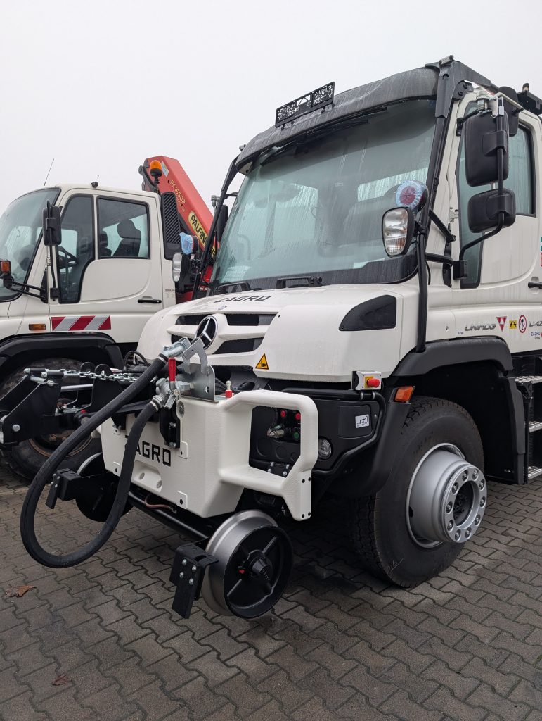 Kurz darauf erreichten wir Grombach, ausdrücklich ohne K, und liefen direkt an der Firma ZAGRO Bahn- und Baumaschinen GmbH vorbei. Ein beeindruckendes Unternehmen mit Sitz in Bad Rappenau-Grombach, Weltmarktführer für Rangier- und Zweiwegetechnik. Hier werden Unimogs so umgebaut, dass sie sowohl auf der Straße als auch auf Schienen fahren können. Zweigleisig im besten Sinne. Das Testgelände ist riesig, der Anblick der Maschinen beeindruckend. Man spürt sofort, dass hier mit viel Know-how und Leidenschaft gearbeitet wird. Danach führte der Weg weiter durch hohes Gras, und es dauerte nicht lange, bis die Schuhe nass waren. Gehört dazu.