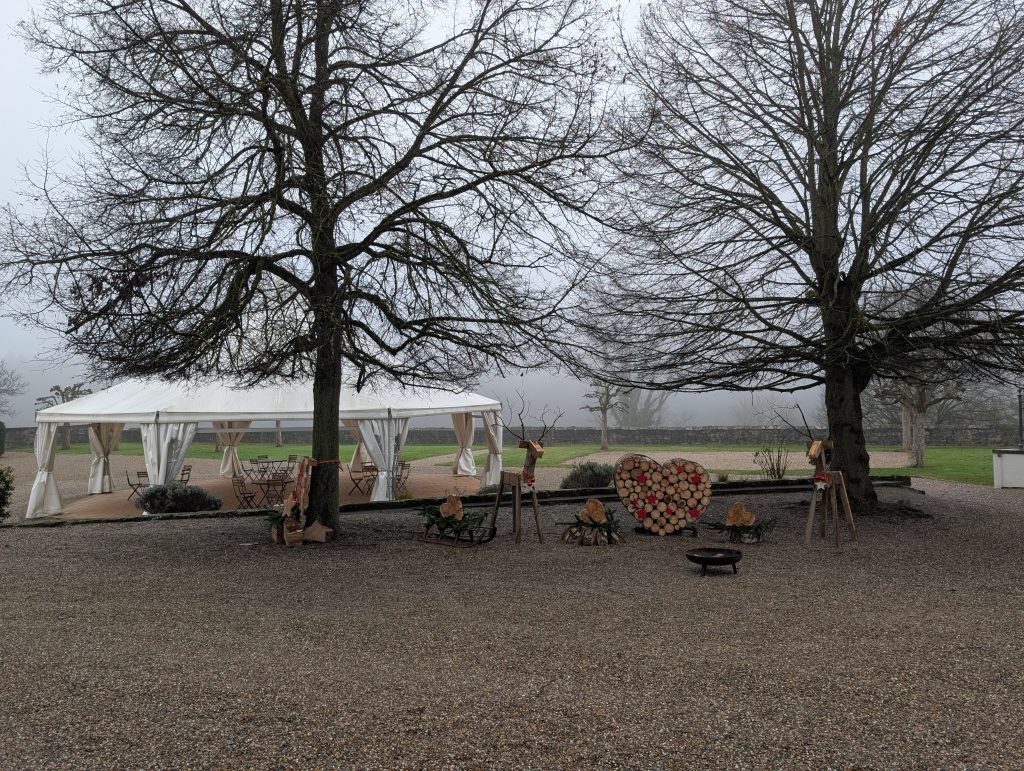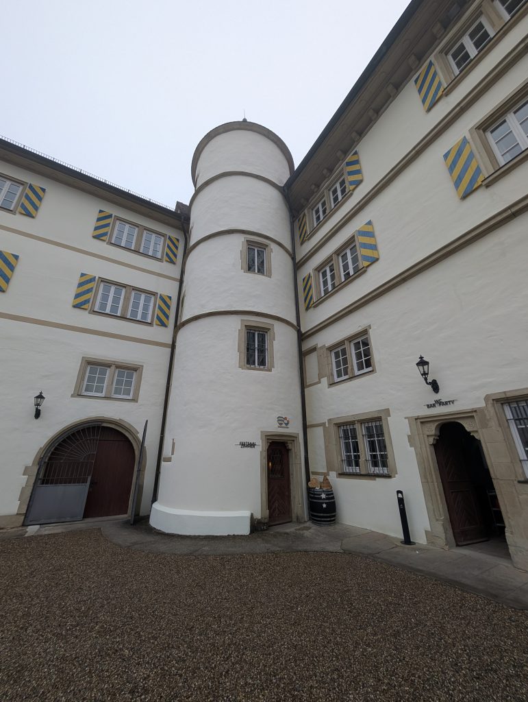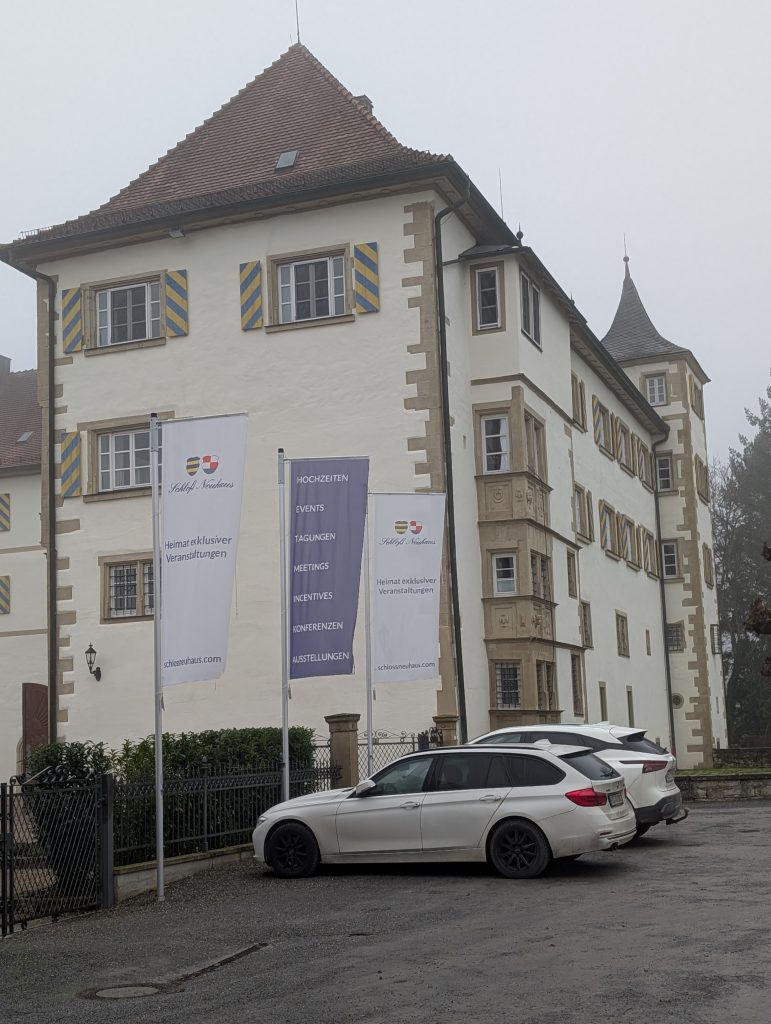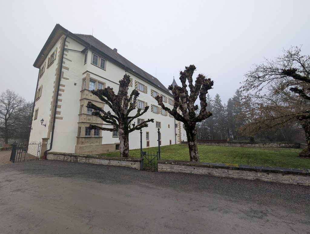 Schloss Neuhaus tauchte wenig später vor uns auf, eindrucksvoll und würdevoll, heute eine Eventlocation. Danach ging es weiter Richtung Steinsfurt. Dort legten wir eine Pause ein, wärmten uns mit heißem Tee und aßen den leckeren selbstgebackenen Stollen von Ute, der Frau von Thomas. In diesem Moment war alles stimmig: sitzen, trinken, durchatmen, kurz innehalten.