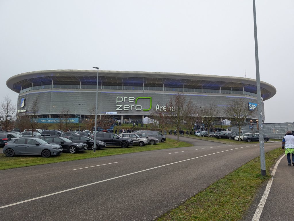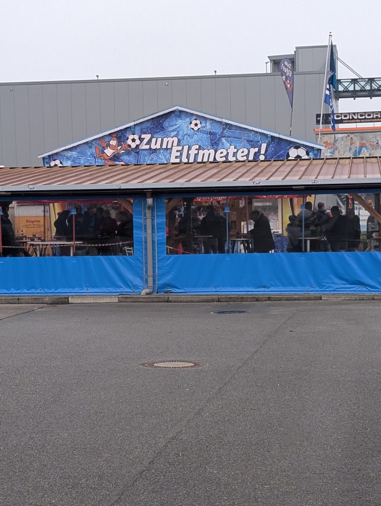 Hinter Steinsfurt führte der Weg am Technikmuseum Sinsheim vorbei. Dort steht tatsächlich eine Concorde der Air France, gut sichtbar von außen. Heute jedoch war der Blick schon weiter nach vorne gerichtet. Der Elfmeter, der Gastrobereich vor dem Stadion, rückte näher. Ich wärmte mich dort mit einem Glühwein auf.